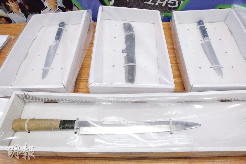 西九龍總區刑事部(行動)警司賈錦琳稱,被捕男子32歲姓李,警方在他身上及隨身物品檢獲4把刀,長27至46厘米不等,另有4樽液體,其中兩樽含易燃物成分,以及兩樽粉末、兩部打火機、兩支火槍及一盒火柴。他指公衆席與裁判官席相距約20米,慶幸裁判官及時走避沒受傷,並指九龍城裁判法院無安檢。