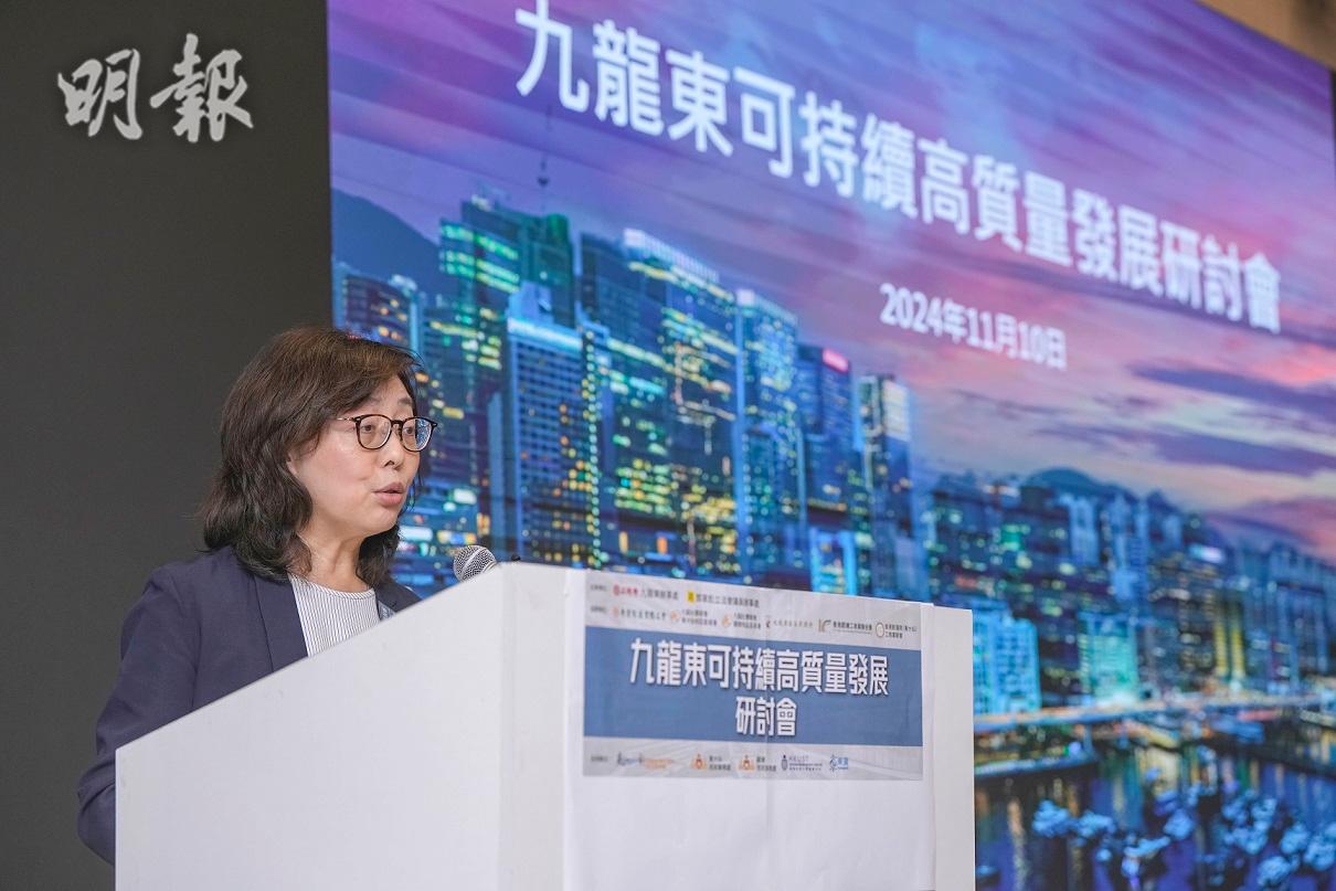 甯漢豪表示,自從公布起動九龍東措施後,政府一直致力促進啟動九龍東商業發展,九龍東商業總樓面面積在過去12年增加逾1倍至超過370萬平方米,未來將會增加至400萬平方米,形容九龍東商業樓面規模可媲美中環核心商業區。她指,起動九龍東辦事處正進行新一輪統計調查,初步結果顯示位於觀塘及九龍灣的商業機構,從事銀行、金融及保險業,以及地產及專業商業服務的機構,是2011年統計調查的近4倍,反映現有更多金融及商業服務機構進駐,進一步有助九龍東作為第二個核心商業區的定位,跨國公司數目亦不斷增加。