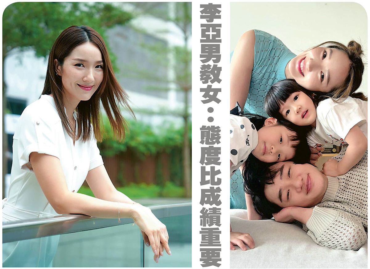 「做媽媽要有好多energy!」李亞男(Leanne)的兩個女兒都已經上幼稚園,正處於喜歡四處探索的年紀,加上由襁褓到上學這個階段,她幾乎貼身照顧,從看育兒書,到處理日常起居飲食、晚上讀故事書等,可以的話她都會親力親為,而丈夫王祖藍常要到不同地方工作,二人商量好育兒大方向後,便交由Leanne「話事」,即使有外傭幫忙,她仍覺得當媽媽絕不容易。「幸好兩個都是女兒,感覺上已比男孩子容易湊,不過那時每天除了照顧她們日常生活就是陪玩,只想她們每一日都過得很充實,令我感受到媽媽這角色真的很辛苦,亦使我想起小時候外公外婆照顧我時是如何勞心勞力。」