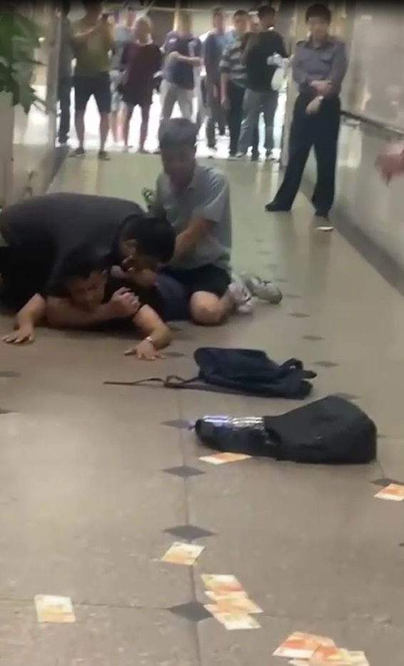 網上流傳片段見到,兩人糾纏期間,有人用拳頭襲擊另一人,背囊、眼鏡、現金等物品散落一地,數名途人圍觀,有人協助制服疑犯。