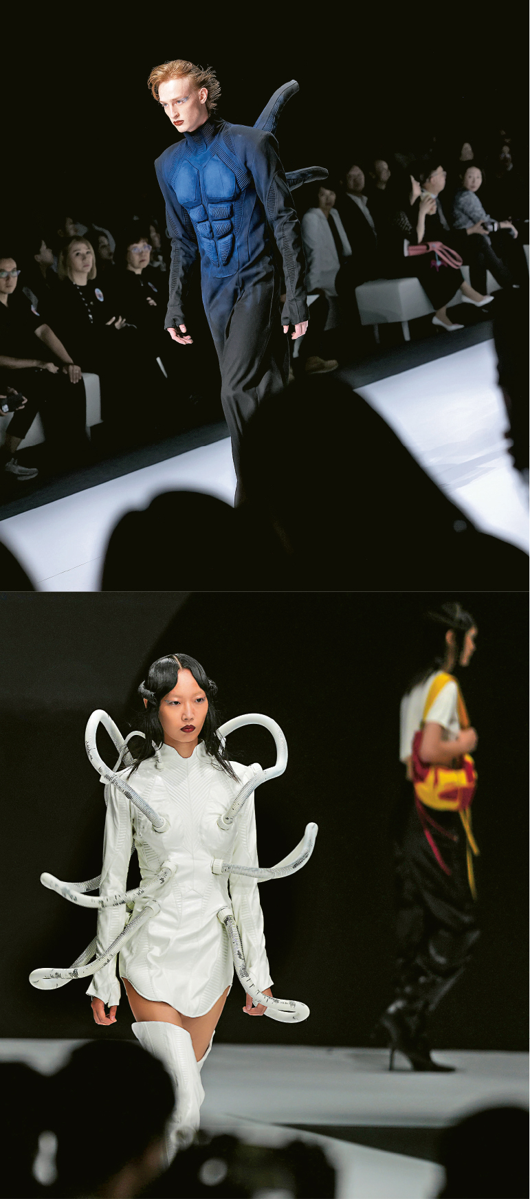 十年人事幾番新,本港時裝產業不斷有設計師進進出出,Angus亦從最初的矚目新人,到現在成為獨當一面的品牌設計師。在事業上他有什麼心得能做到持續長遠的發展?「經營品牌並非單靠推出創意設計便能成事,因為說到底這終究是一門生意。我們在創作過程中遇過許多質疑的聲音,亦花了不少時間迎合主流市場的審美,嘗試各種風格,直至我們在近年找到與品牌契合度最高的未來主義風格,再糅合極具辨識度的外星生物結構細節,這都讓我們找到市場上的缺口,奠定品牌獨特的美學,繼而吸引一班擁有相同調性的受眾,讓品牌在良性環境下漸漸成長起來。」