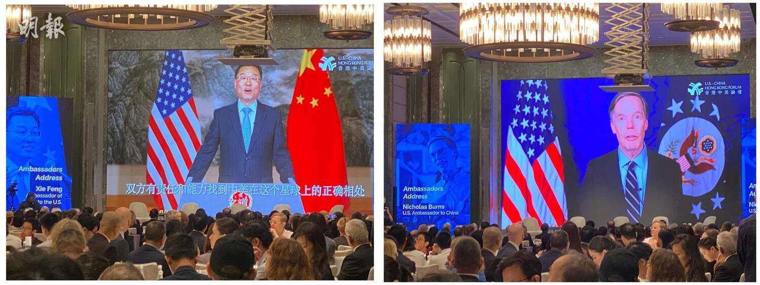 中美交流基金會11月15日在香港舉辦一年一度的「香港中美論壇」,以「回顧與展望」為主題,邀請中美及英國、澳洲、印度等地官員學者出席。中國駐美大使謝鋒和美國駐華大使伯恩斯 (Nicholas Burns) 視像致辭。