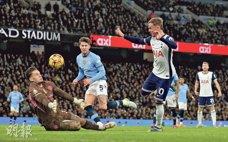 在哥迪奧拿先收起中場核心奇雲迪布尼下,曼城此仗在主場未能掌控中場組織,與熱刺互有攻守,而客軍更於13分鐘由中場占士麥迪臣殺入禁區接應翼鋒古路施夫斯基的傳中球,近門凌空射入先開紀錄。7分鐘後,這名英格蘭國腳中場再次直搗禁區接應孫興慜的妙傳,再乖巧挑射入網拉開比數,半場領先兩球。