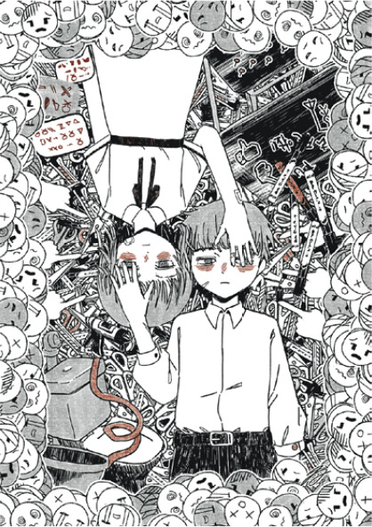 何宇軒的作品亦畫上不少負面表情,作品介紹稱是「隱喻每一個表情的背後,可能都隱藏着不為人知的故事」,而被欺凌者被這些情緒「包裹着」無法逃離。