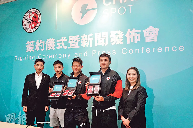 【明報專訊】中國香港足球總會昨舉行記者會宣布,獲共享充電器品牌CHARGESPOT於2024/25年球季贊助港足,金額約100萬元,並將推出陳肇鈞、顏卓彬、鐘樂安及將第100次上陣的隊長葉鴻輝等多名港腳肖像的特別版充電器予租借,同時為港將出外比賽提供充電支援,並計劃在明年啟用的啟德體育園設置充電器租借站。