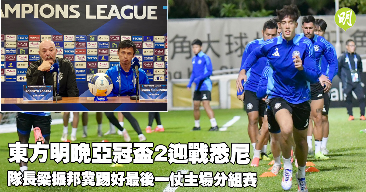 亞冠盃2|東方明晚迎戰悉尼 隊長梁振邦冀踢好最後一仗主場分組賽 (19:14)