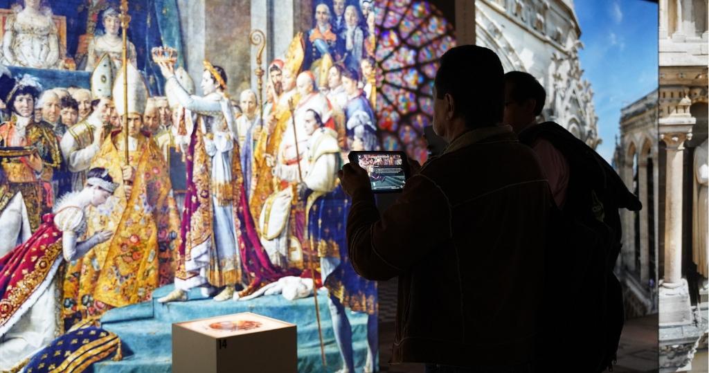展覽以史實為本,由一眾熱衷於藝術、文化和歷史的專家創立的法國文化教育先鋒組織Visionairs,運用AR技術,帶領訪客參與一場互動之旅。每名訪客將會使用觸控平板電腦,以手指操控、穿梭於20個不同時代的時空入口,沉浸於多個盛大的歷史時刻,例如亨利四世國王逾400年前的奢華婚禮、拿破崙的加冕典禮,以及19世紀由維歐勒·勒·杜克(Viollet-le-Duc)設計、令人嘆為觀止的巴黎聖母院尖塔的建造過程。