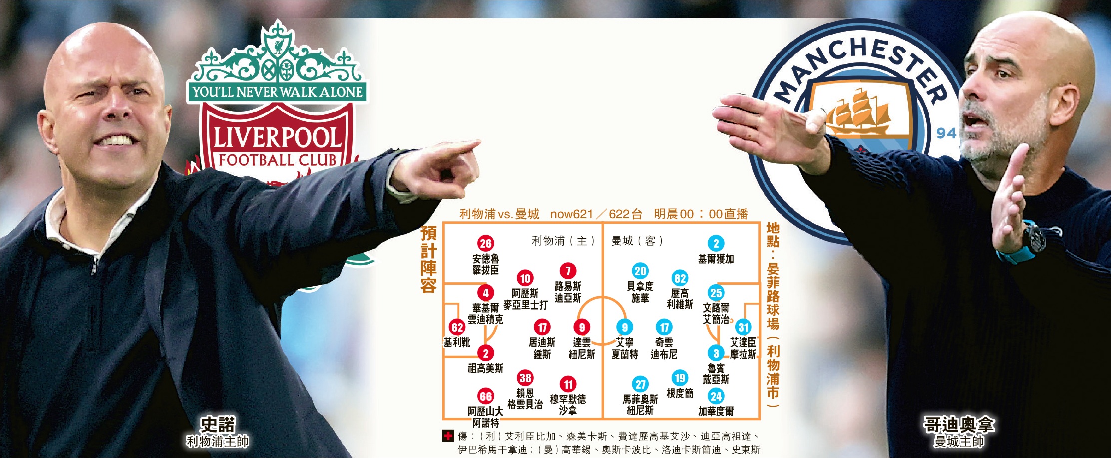 利物浦vs.曼城 now621/622台 明晨00:00直播