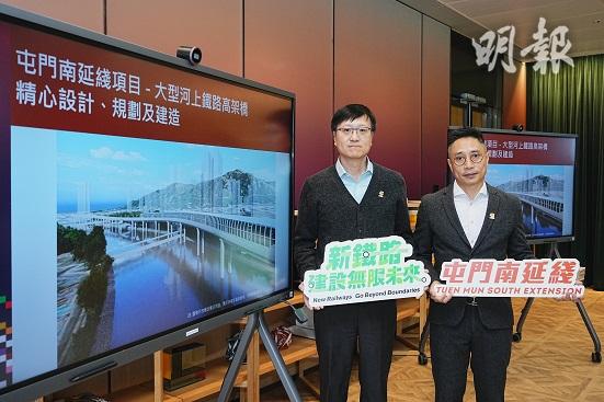 屯門南延線項目料2030年竣工,當中涉在屯門河上進行高架橋建造工程,有關工程預計大約2028年完工。港鐵項目建造主管(新界南)林偉德表示,高架橋將來會連接現有屯門站末端,部分工程或需在晚上接駁,如供電系統、路軌等,預計工程後期,即2027、2028年才進行相關接駁工程,暫未見會影響行車時間。