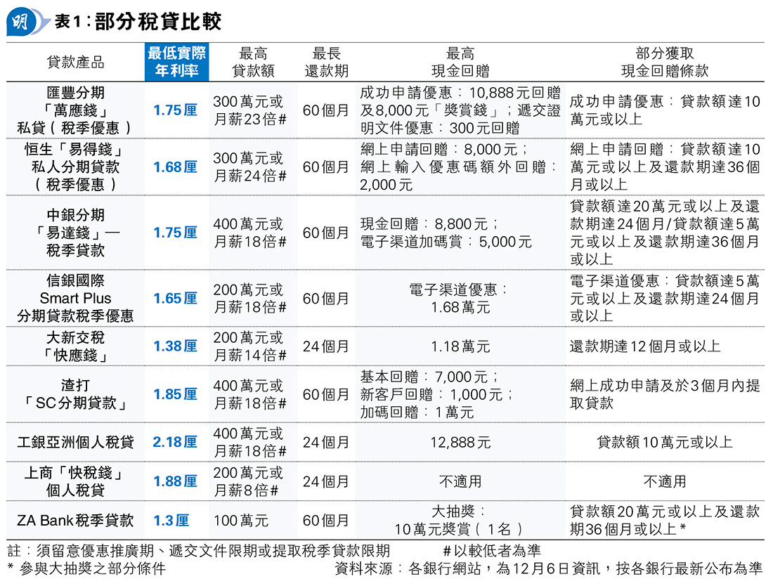 《幫你格價》:借稅貸宜留意現金回贈條款