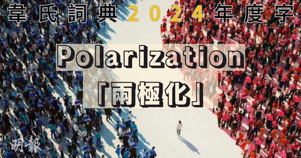 美國《韋氏詞典》(Merriam-Webster)周一(9日)公布「兩極化」(polarization)為2024年度字。特約編輯Peter Sokolowski表示,這個詞語在美國較常用於描述種族關係、政治和意識形態,「亦意味着我們正在走向極端,而不是走向中間」,又稱這個詞帶有諷刺意味,因為不同政治光譜的人也會同意這個說法。