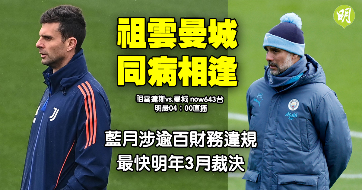 兩支近期在聯賽失分頻仍的英、意豪門曼城及祖雲達斯,明晨將在歐聯第6輪碰頭。其中身陷自卡塔爾財團入主後最大低潮期的客軍「藍月」,其涉嫌違反115條英超聯賽財政規例的聽證會,則在上星期五正式完成,預計最快明年春季會有結果,一旦罪成勢面臨聯賽扣分。