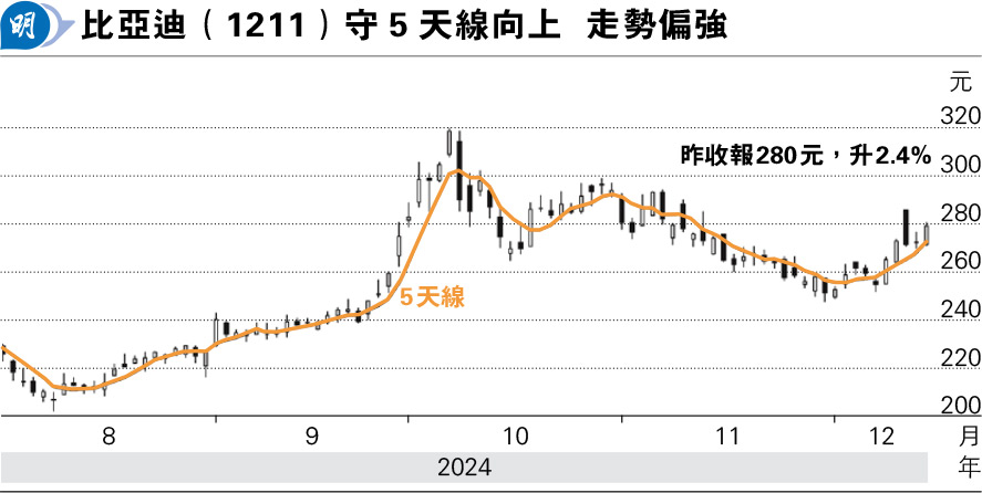 至於內地汽車行業表現不算差,要選擇有品牌、未來有外銷能力的股份,比亞迪(1211)是合理又穩健之選。以滾動市盈率21倍計算,估值並不過分,同樣是優質的企業,容許投資者長期持有,走勢亦普遍較「蔚小理」為佳。目前內地車市表現不差,比亞迪有望稍後時間跑贏大市,中線有望挑戰年內高位的320元水平。