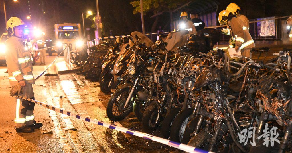 【20:35更新】今日(12日)凌晨4時許,警方接獲途人報案,將軍澳景嶺路彩明苑彩富閣對開的露天電單車停泊位,有電單車起火。消防接報到場,火勢已迅速蔓延,多輛電單車受波及陷火海,隨即動用一條喉及一隊煙帽隊灌救,其後將火救熄,事件中無人受傷。現場共有40輛電單車,其中35輛嚴重焚毀,部分只燒剩支架。