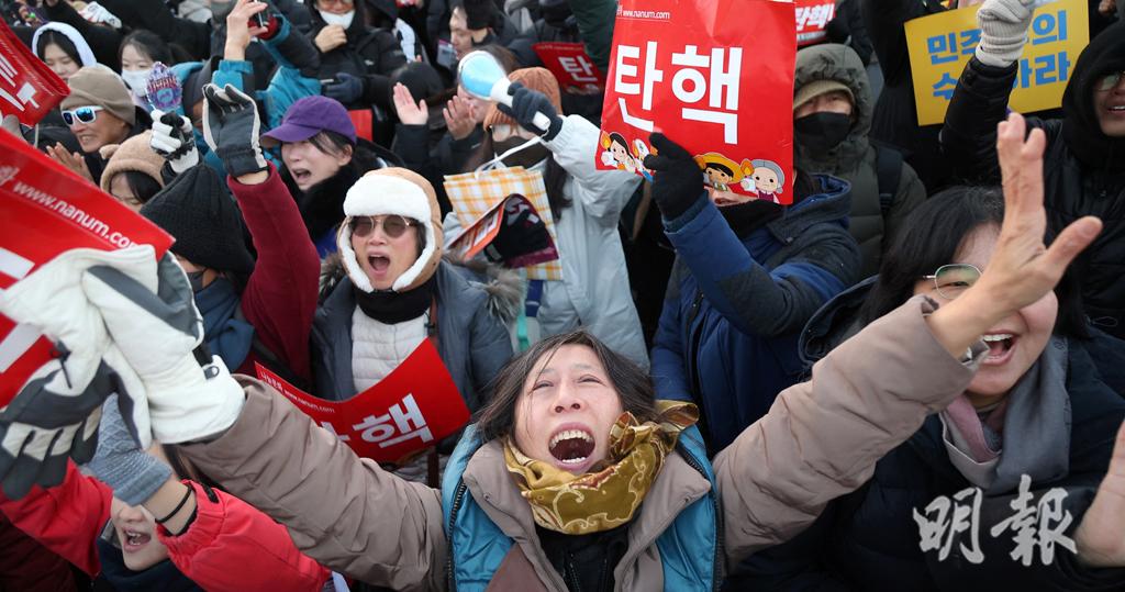 【16:05】韓國總統尹錫悅的彈劾案,於香港時間今午(14日)3時在國會再次進行表決,彈劾案以204票贊成、85票反對、3票棄權、8票無效,獲得通過。尹錫悅將被停職,由總理韓悳洙代理總統職務。反對派形容今次是「人民及民主的勝利」,在國會大樓外的集會民眾透過直播得知彈劾案通過後,均齊聲歡呼。