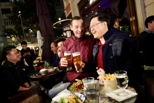 特首李家超周六北京述職返港,今晚(15)晚上到灣仔利東街及中環大館,了解聖誕前的市道。李與外出消費的市民傾談,呼籲市民聖誕期間多出來消費,以振興本港經濟。