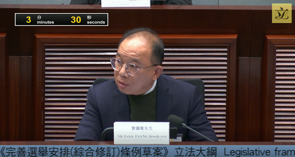 議員謝偉銓關注當局為何只於個別選舉中引入智能投票箱,曾國衞表示,距離明年立法會換屆選舉尚有時間,當局仍在開發及測試部分技術,故先保留彈性,或會採用傳統票箱或智能票箱,會再按開發及測試結果、技術成熟程度及可靠性再作決定,稍後將再向立法會報告。他強調,會保障保密等重要原則。