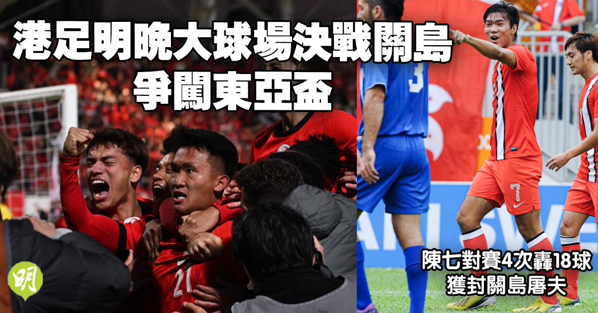 翻查資料,港足曾在7屆東亞外遇上關島這支老對手,往績6勝1和完全佔優,而且在2003、2005、2007及2009年4屆均大炒對手10球以上,分別贏11:0、15:0、15:1及12:0,名宿射手「陳七」陳肇麒在當中3仗連同2012年一屆梅開二度,4場狂轟18球之多,自此被球迷封為「關島屠夫」成一時佳話。