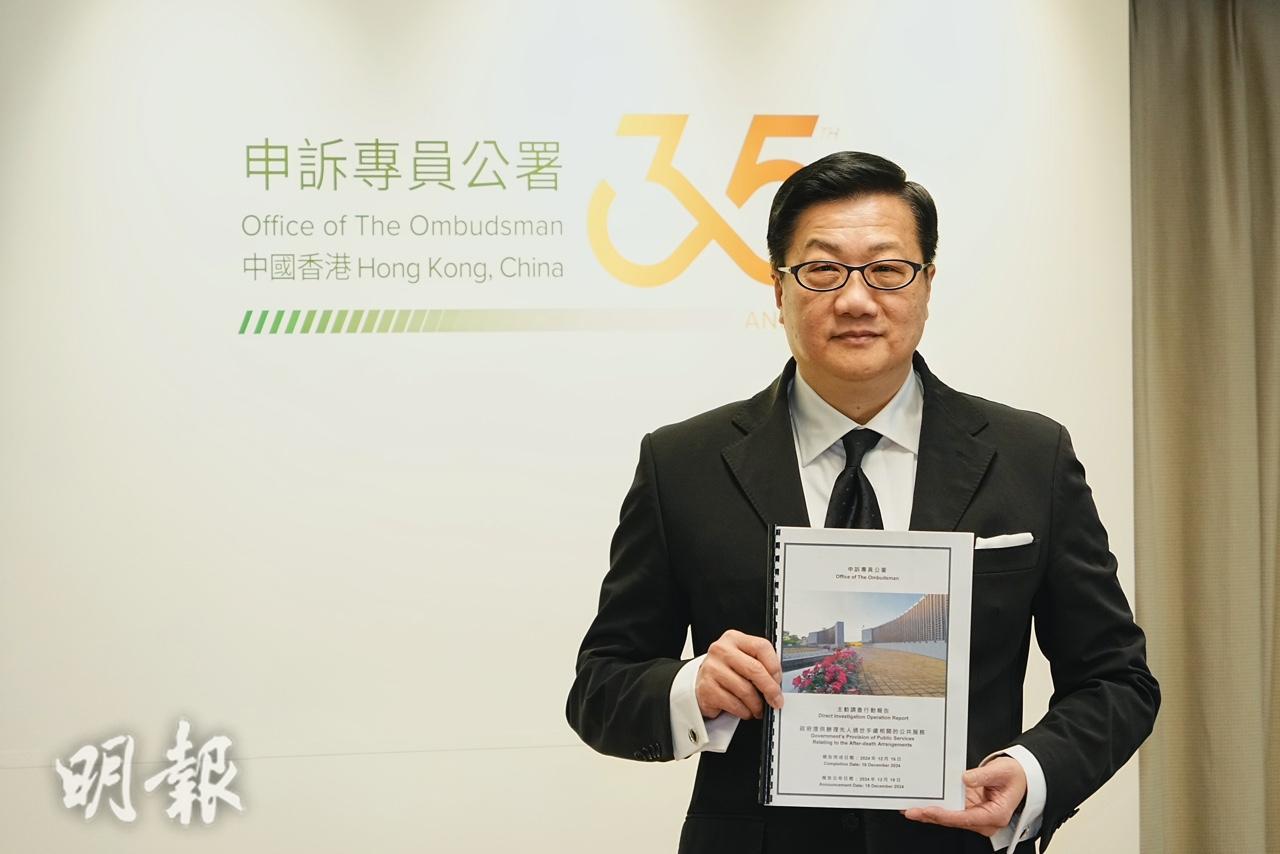 申訴專員公署今(18日)公布就辦理過世手續相關公共服務的主動調查報告。申訴專員陳積志表示,辦理先人離世手續涉及不同政府部門的服務,而家屬面對失去親人的悲痛時,仍要處理各種身後事安排,雙重壓力下使人感無助及徬徨,期望政府各部門建立跨部門的一站式專題網站,並附設相關電子服務申請。
