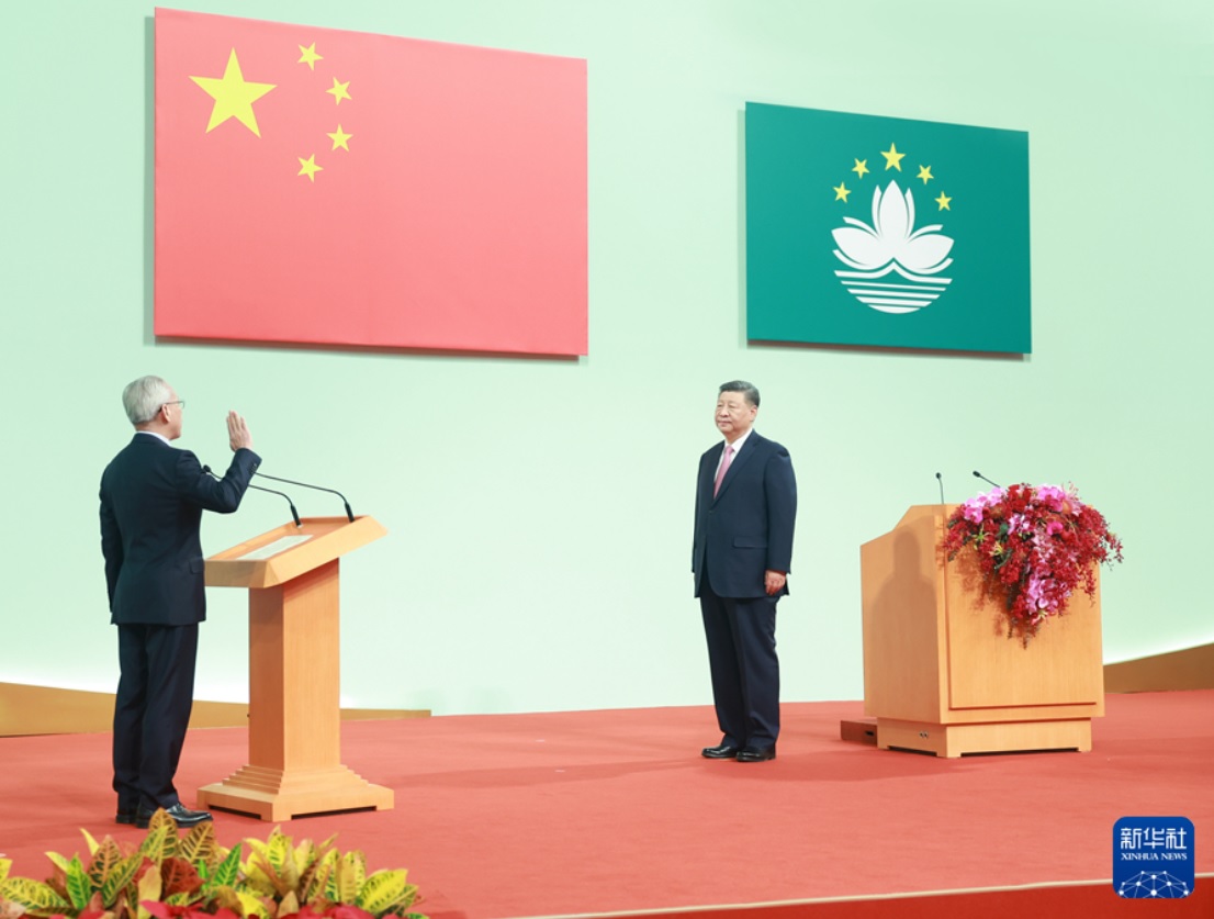 澳門回歸25周年大會暨澳門特區第六屆政府就職典禮今早(20日)舉行,國家主席習近平為澳門第六任特首岑浩輝及第六屆政府主要官員監誓。他亦發表重要講話,指澳門回歸祖國25年來,在中央政府和祖國內地大力支持下,政府團結帶領社會各界接續奮鬥,具有澳門特色的一國兩制實踐取得巨大成功,澳門發生翻天覆地的變化,國際影響力大幅提升。