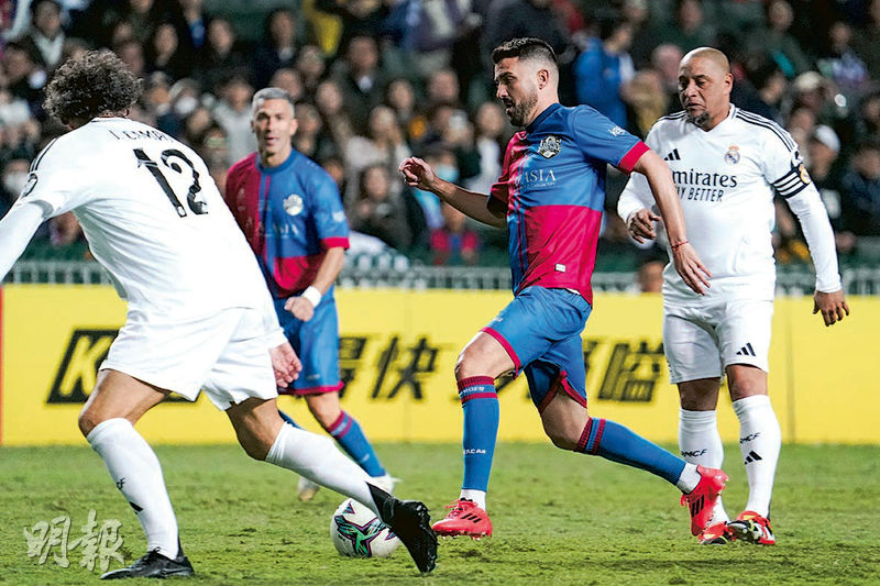 【明報專訊】雲集35位西甲雙雄名宿的「LEGENDS ASSEMBLE傳奇球星表演賽」昨晚在香港大球場舉行,最終巴塞隆拿傳奇隊憑射手韋拿戴帽兼貢獻助攻,以5:2大勝有奧雲梅開二度的皇家馬德里球星隊。不過兩大球星亨利及羅拔圖卡路士上陣不足20分鐘。大會賽後宣布,賽事有7982人入場。