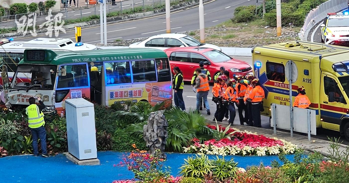 大圍小巴被撞失控衝前近百米 剷上迴旋處中央花槽10人傷 (18:48)