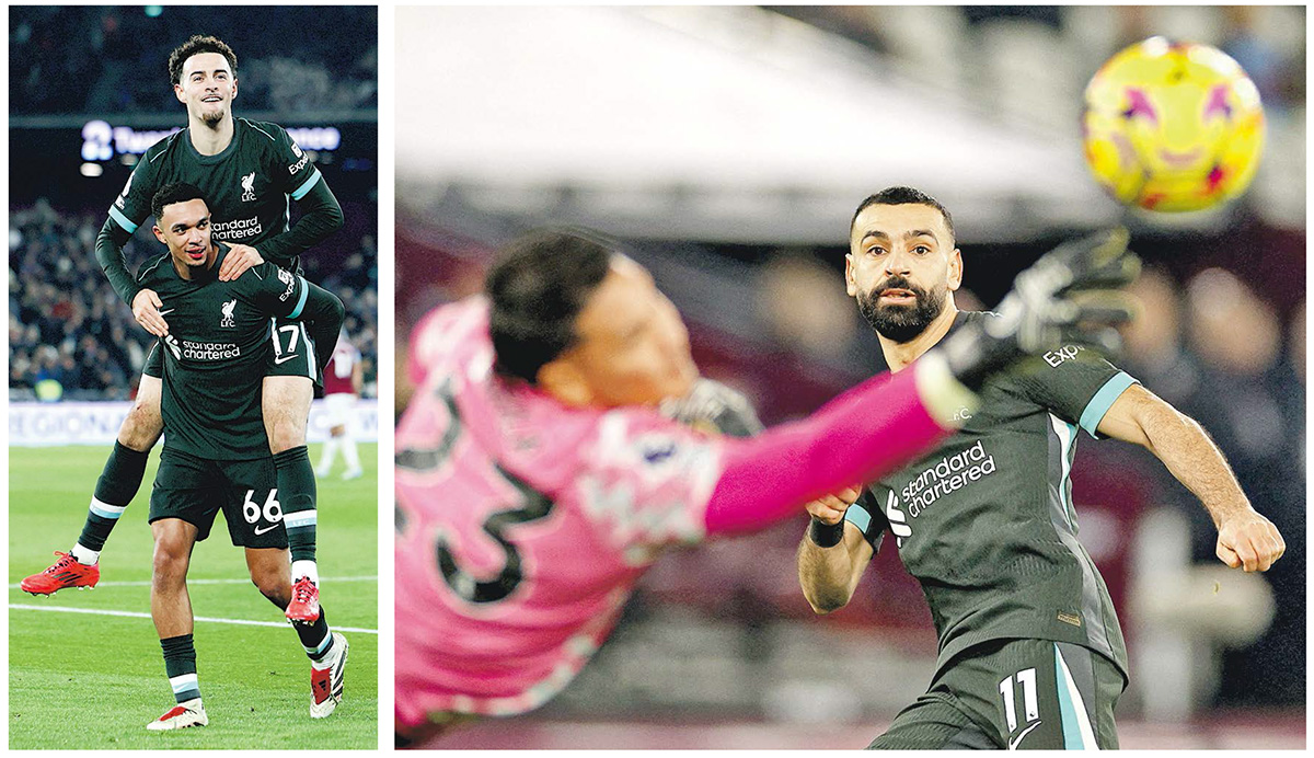 利物浦昨仗勢如破竹,30分鐘由翼鋒路易斯迪亞斯開紀錄,沙拿40分鐘巧妙傳予加普撞射得手,4分鐘後再個人射近柱入網,這對三叉戟為紅軍半場領先3:0,加上後衛阿歷山大阿諾特下半場遠射建功,以及沙拿完場前助攻前鋒迪亞高祖達埋齋,作客5球大炒韋斯咸,賽後18戰45分高踞榜首,領先同日作客2:0挫愛華頓、多踢一場的諾定咸森林8分,以及阿仙奴9分,且各賽事連續23場不敗,強勢迎接下月6日主場大戰曼聯的「雙紅會」。