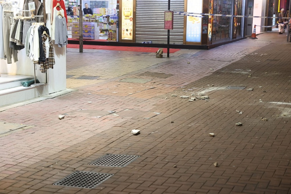 局方指屋宇署接獲通知後昨晚立即派員視察,在警方協助下暫時圍封受影響行人路段,並即時安排政府承建商全面檢視大廈外牆和移除有可能鬆脫的石屎。緊急工程完成後,相關路段已解封,屋宇署事後亦會向相關業主收回工程費用。