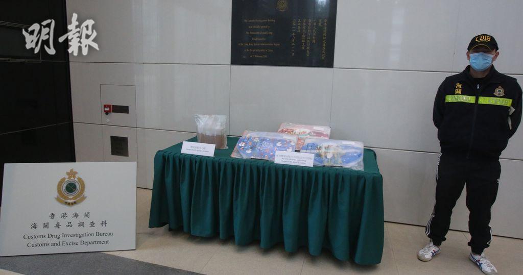 海關毒品調查科調查主任姚文顥表示,透過情報分析及深入調查,海關於上周五(3日)在港珠澳大橋香港口岸截查一件報稱載有亞加力膠板由廣州寄出的速遞郵包,關員利用X光機及詳細檢驗後,在郵包內3塊亞加力膠板夾層中空位置,檢獲共約2.4公斤液態可卡因,市值約200萬元。