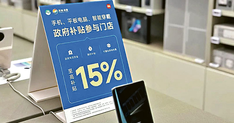 【明報專訊】為拉動內需促進消費,內地2025年加力擴圍實施「兩新」(大規模設備更新和消費品以舊換新)政策,官方此前預告買手機等數碼產品將有補貼。補貼標準昨公布,購買6000元(人民幣,下同,約6367港元)以內的手機、平板電腦、智能手表、手環等數碼產品,按售價15%給予補貼,上限500元。