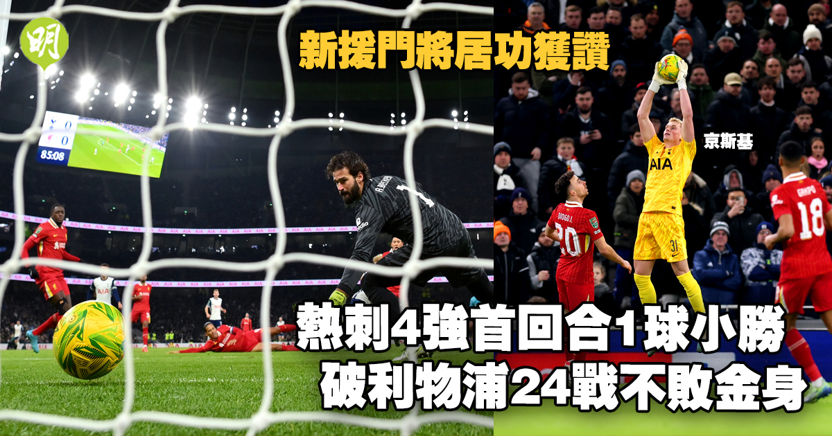 英聯盃|熱刺4強首回合1球小勝 破利物浦24戰不敗金身 新援門將居功獲讚 (19:45)