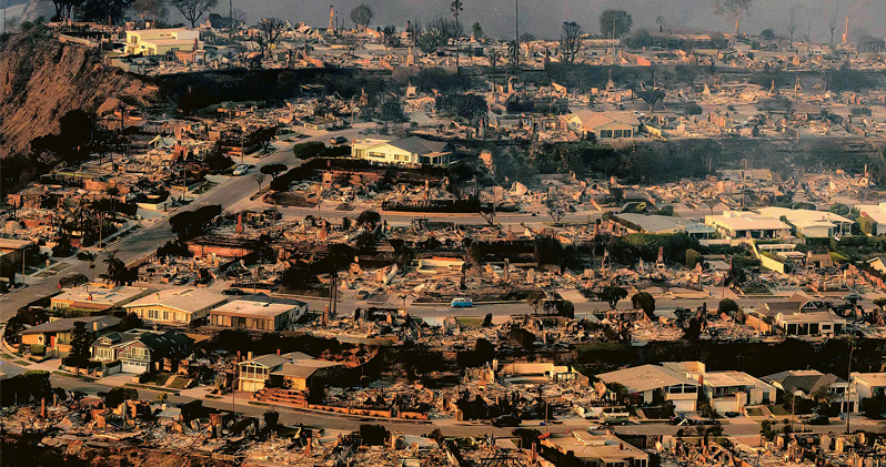 截至周四,洛杉磯周邊的山火面積已接近120平方公里(相當於1.5個香港島)。消防人員說,空中消防偵測顯示,在最大災場太平洋斷崖區發生的「斷崖山火」似已燒毁5000多座建築,東面的「伊頓山火」造成的損失亦不相上下。這兩場大火已是加州有紀錄以來破壞性最大5場山火中的其中兩場。當局指出,不僅房屋和企業設施被大火吞噬,大量汽車、移動房屋和棚屋等其他財產也被燒毁。有官員形容現場就像被原子彈炸過。至今有18萬人疏散,另有20萬人收到疏散令。