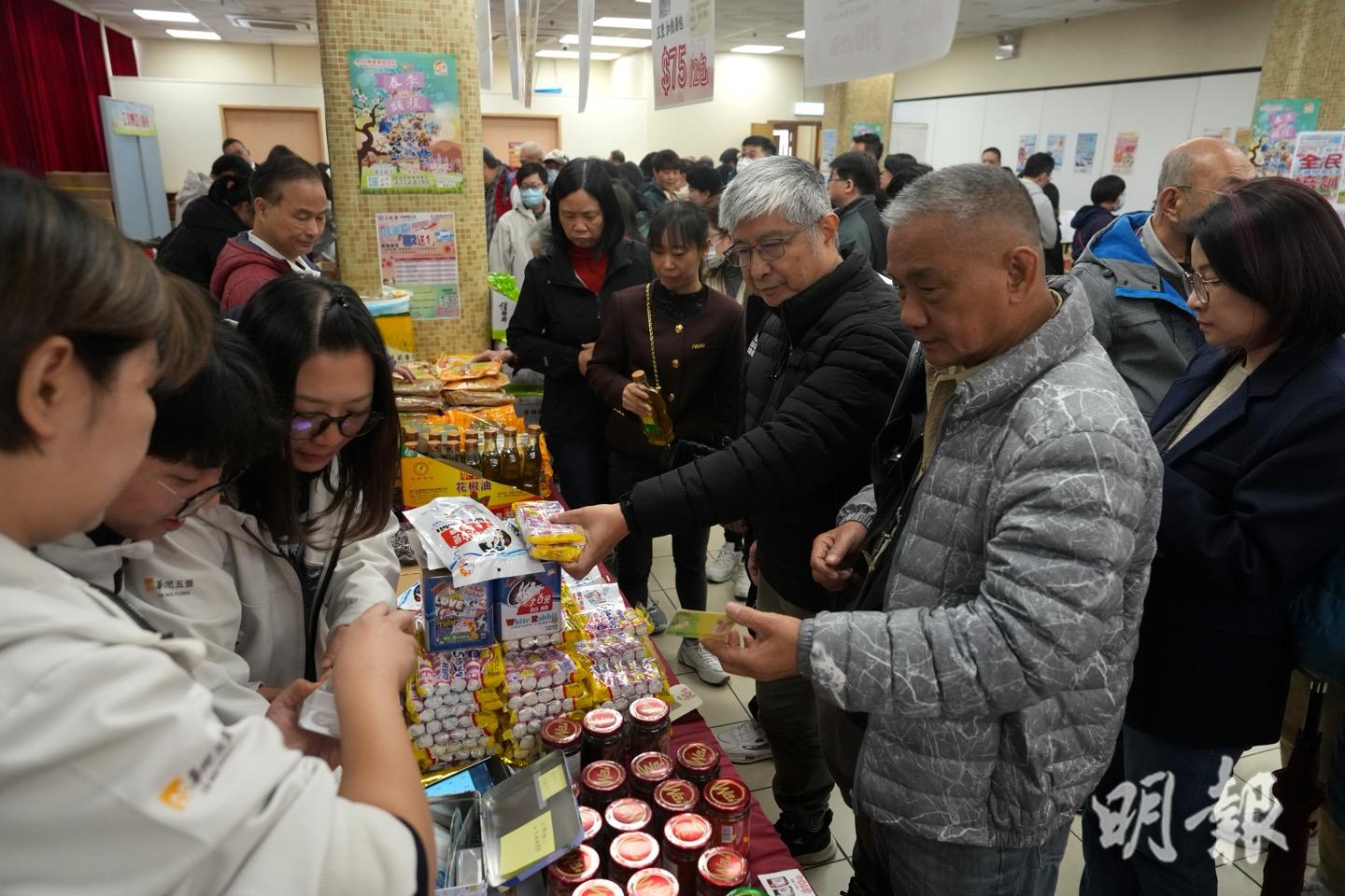 市民何女士以往曾參與同類展銷會,樂見活動能復辦,特意到場支持,並花費約千元辦年貨及購買糧油。對於今次活動場地較狹窄,她表示雖不方便,但喜歡與其他人一起「搶貨」,令她感覺熱鬧。