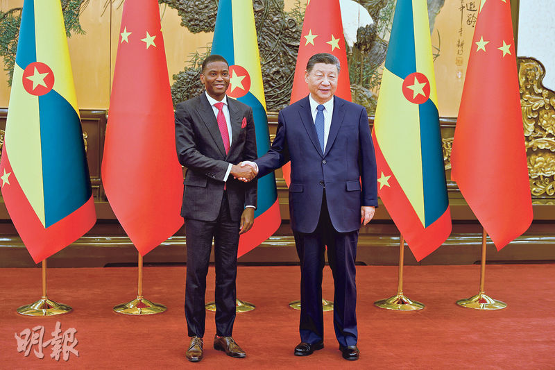 【明報專訊】國家主席習近平昨日上午在北京人民大會堂,會見來華正式訪問的格林納達總理米切爾。習近平指出,近年來中格關係穩定發展,雙方相互尊重、平等相待,政治互信不斷鞏固,各領域務實合作成果豐碩,人民友誼日益深厚。中方願同格方一道,加強兩國發展戰略對接,推動中格合作收穫更多成果,更好造福兩國人民。