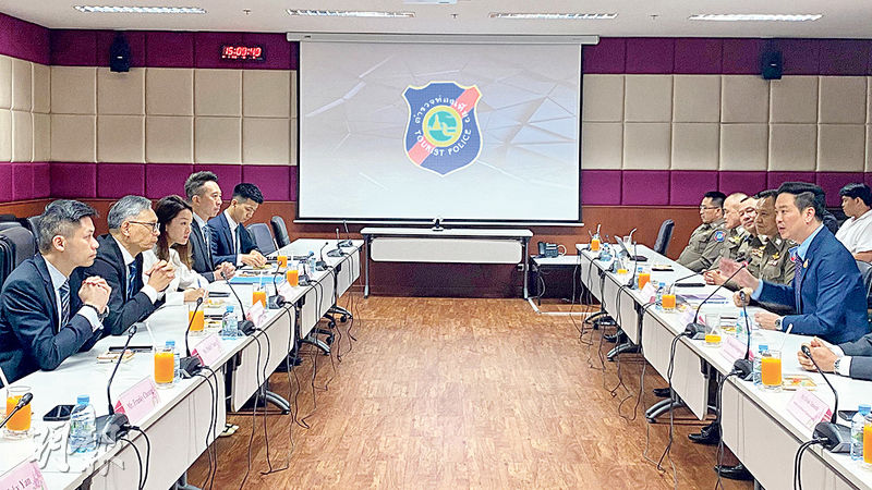 小組昨早與泰國國家警察總署督察長塔猜會面,就港人求助個案交換情報,引述對方稱會盡力協助求助港人盡快安全回港;泰國旅遊與體育部副部長及泰國旅遊警察局局長昨午向小組簡介保障遊客措施,包括官方手機應用程式及電話中心,24小時支援遊客。
