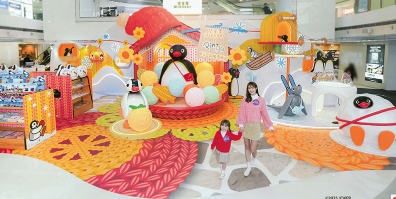 【明報專訊】熱愛歷險的人氣企鵝Pingu今個農曆新年帶同整個家族成員由南極洲越洋來到銅鑼灣皇室堡「旅居」,主角Pingu、Pingu爸爸、Pingu媽媽、Pinga(Pingu妹妹)、Pingi(Pingu女朋友)及海獅Robby(Pingu 好朋友)總動員為大家送上「皇室堡×Pingu暖笠笠鈎織雪樂園」,園內設3大玩樂區,其中最矚目的是2米高「七彩鈎織小部屋」,Pingu身上更佩戴了由Happy Yarn創辦人及創意總監劉陳凱韻(甘比)帶領其團隊親自鈎織的「花開富貴利市袋」,非常可愛!另外兩個區域為「趣味滑雪場」及「雪球Pingu滾動中!」,打卡同時更可與一眾企鵝互動。
