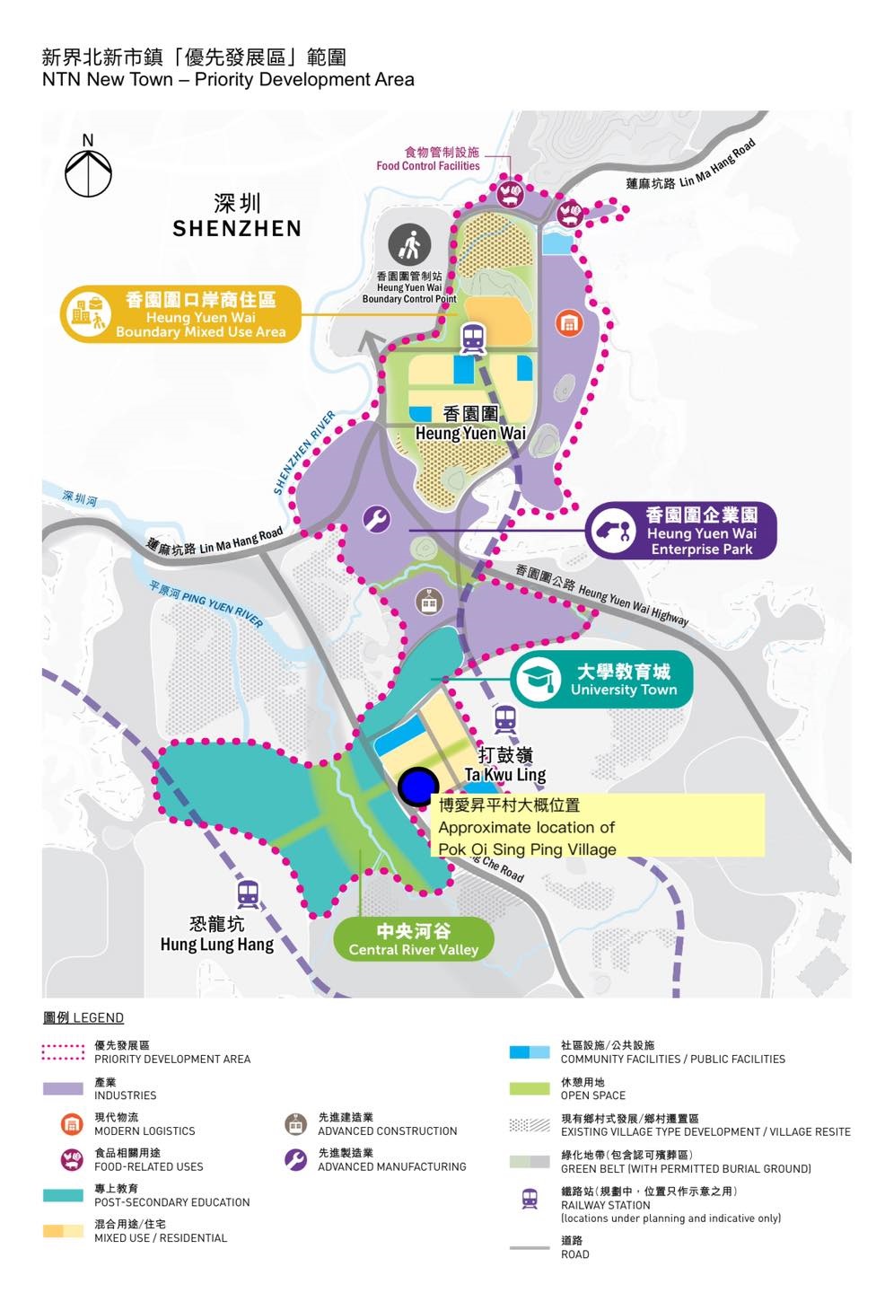發展局重申「博愛昇平村」會按原定計劃營運至少5年至2029年8月中,面積超過200公頃的新界北新市鎮「優先發展區」會分階段發展,視乎工程設計與大學城的發展時間表等進展,局方有空間探討2029年8月中後延長「博愛昇平村」營運期,或分階段交還用地的可能性。發展局與房屋局就此會緊密聯繫。