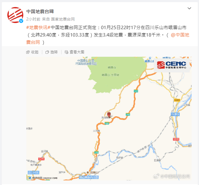 即時兩岸 四川康定、井研、峨眉山接連地震 (00:20) 發佈於 8 個月 前 2025 年 1 月 26 日 By 明報 中國地震台網正式測定,1月25日晚上10時17分,四川樂山市峨眉山市發生3.4級地震,震源深度18公里。在此之前,四川當天已有另外兩次有感地震。 1月25日下午4時23分,四川樂山市井研縣發生4.1級地震,震源深度10公里;下午1時30分,四川甘孜州康定市發生3.2級地震,震源深度8公里。(中國地震台網) 相關文章:井研四川地震峨眉山康定樂山編輯推介 Up Next 全國兩會3月4日開幕 歡迎中外記者現場採訪 (16:41) 不要錯過 隱形的火車站 雲南諸葛城站(多圖) (02:52) 繼續閱讀 贊助商 猜你喜歡 雲南普洱市景谷縣發生3.2級地震 (16:43) 菲6.9級地震最少69死 菲律賓宿霧省6.9級地震釀最少60死 逾600次餘震【短片】 (12:16) 甘肅5.6級地震最少7人傷 居民︰在牀上被搖醒 (13:32) 中國建最大地震預警系統 秒級預警覆逾九成危險區 台灣海峽一日兩地震 閩粵震感明顯 (19:33)