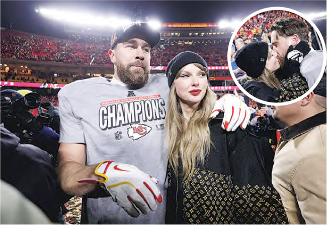 【明報專訊】美國樂壇天后Taylor Swift昨日偕同父母及胞弟一起入場,見證男友兼堪薩斯城酋長隊球員查維斯卻斯(Travis Kelce)跟隊友擊敗水牛城比爾隊,成為史上第4隊連續3年殺入超級碗決賽的球隊,酋長隊更有望成為美式足球聯盟史上首隊連續3屆奪冠。難怪在貴賓廂觀戰期間,Taylor左擁未來奶奶Donna,右攬媽媽Andrea,一起為男友打氣,甫完場又立即衝落草地跟查維斯擁吻。