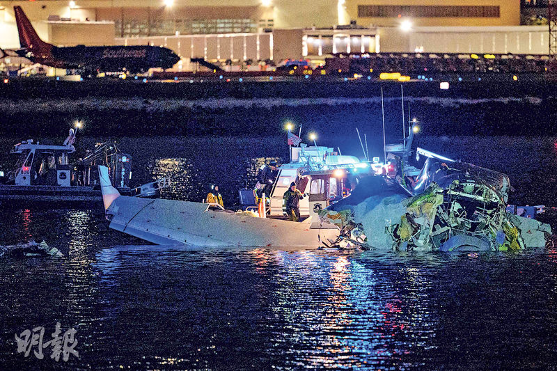 【明報專訊】美國航空子公司太平洋西南航空公司(PSA Airlines)一班載有60名乘客和4名機員的內陸客機,周三(29日)晚在首都華盛頓列根國家機場附近上空,與美國陸軍一架載有3名士兵的黑鷹直升機相撞後墜河。美國總統特朗普昨主持記者會,稱空難中無人生還,並說客機上還有幾名其他國籍乘客。他歸咎奧巴馬和拜登執政期間推行的多元化政策導致安全標準下降。官員昨表示已發現28具屍體。克里姆林宮證實客機上有俄羅斯公民。