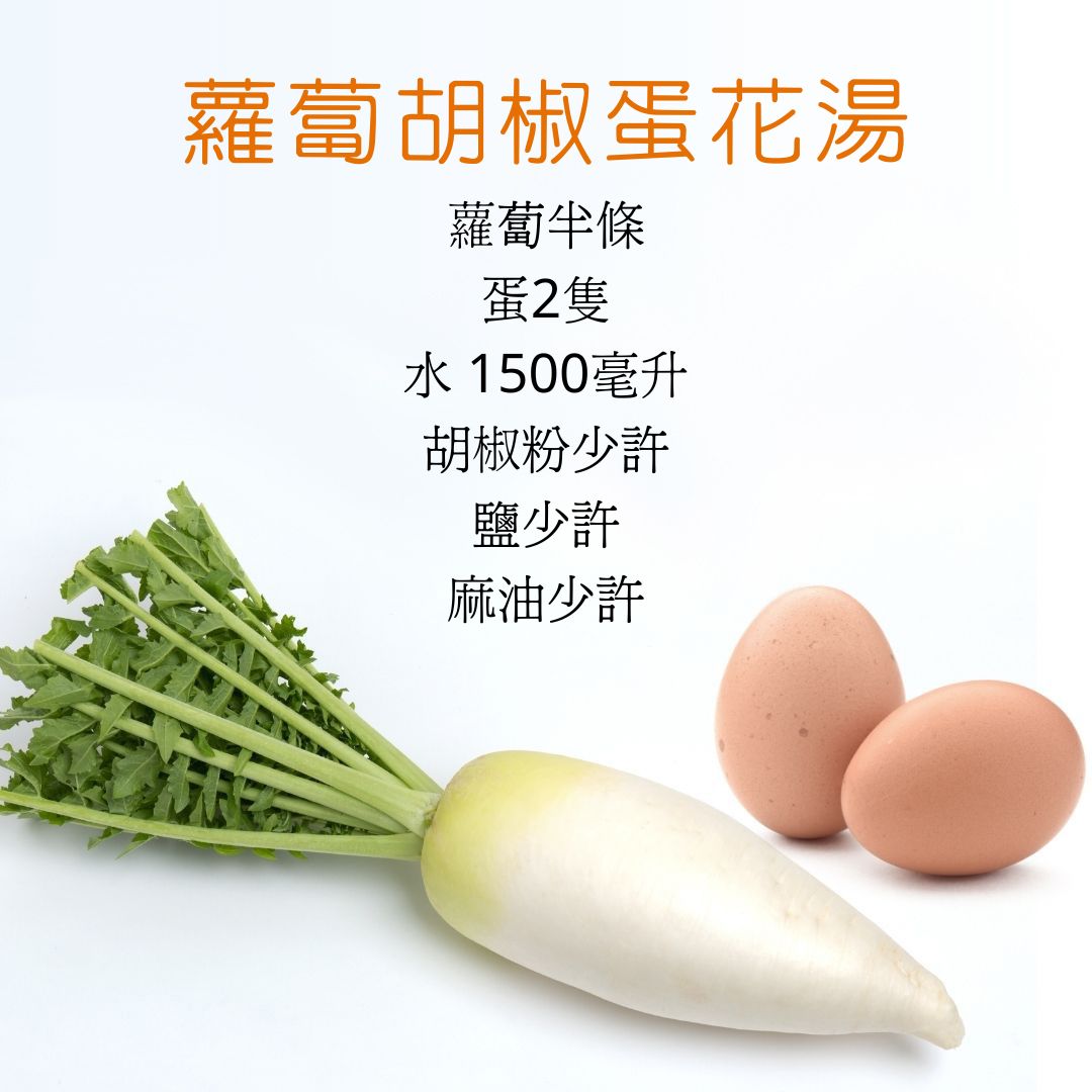1.蘿蔔胡椒蛋花湯(3-4人份)