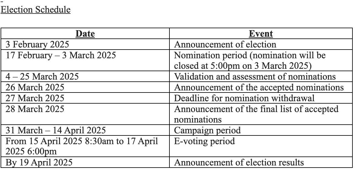 立法會前年11月通過改組中大校董會,校董人數減至34,上月選出2席職員代表,迄今尚欠3席,有待選舉產生。中大校董會今致函全體學生,公布學生校董的選舉詳情及日程。按照日程,學生可於2月17日起的兩周「提名期」推舉候選人,其後3月4日至25日則用作「驗證及審核提名(Validation and assessment of nominations)」。大學將在3月26日公布合資格候選人,至4月15至17日「投票日」電子投票,暫定4月19日前公告選舉結果。