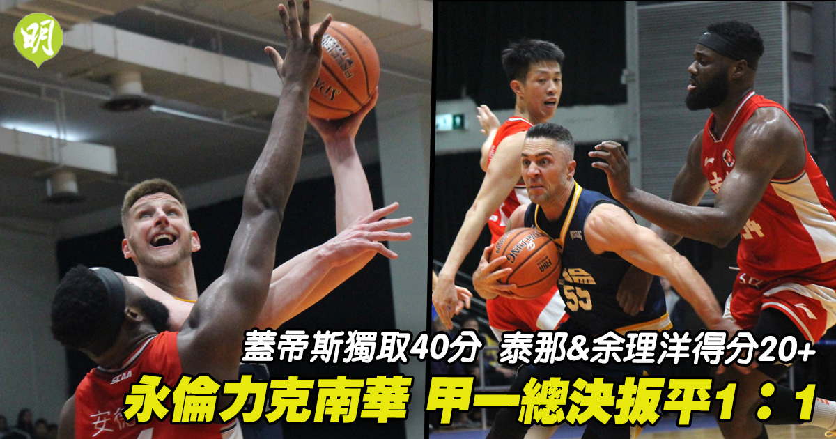 香港甲一男子籃球聯賽今晚(4日)在灣仔修頓場館上演總決賽第2仗。永倫憑外援中鋒蓋帝斯獨取40分及15籃板「雙雙」,另有泰那和余理洋得分「20+」,終以97:91力克南華,追平場數1:1。兩軍將於周四在修頓上演第3戰。