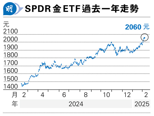 基金界亦多睇好年內黃金表現,其中惠理基金ETF業務高級策略師趙善德指出,近期受市場注目特朗普政府政策,引發避險資金湧入金市,農曆新年期間金價再衝破歷史新高。他認為,特朗普政府的減稅及增加國防開支等措施,可能會擴大美國預算赤字,加上對不同國家上調關稅,這可能會加劇通脹壓力,形成推高金價的多重利好。