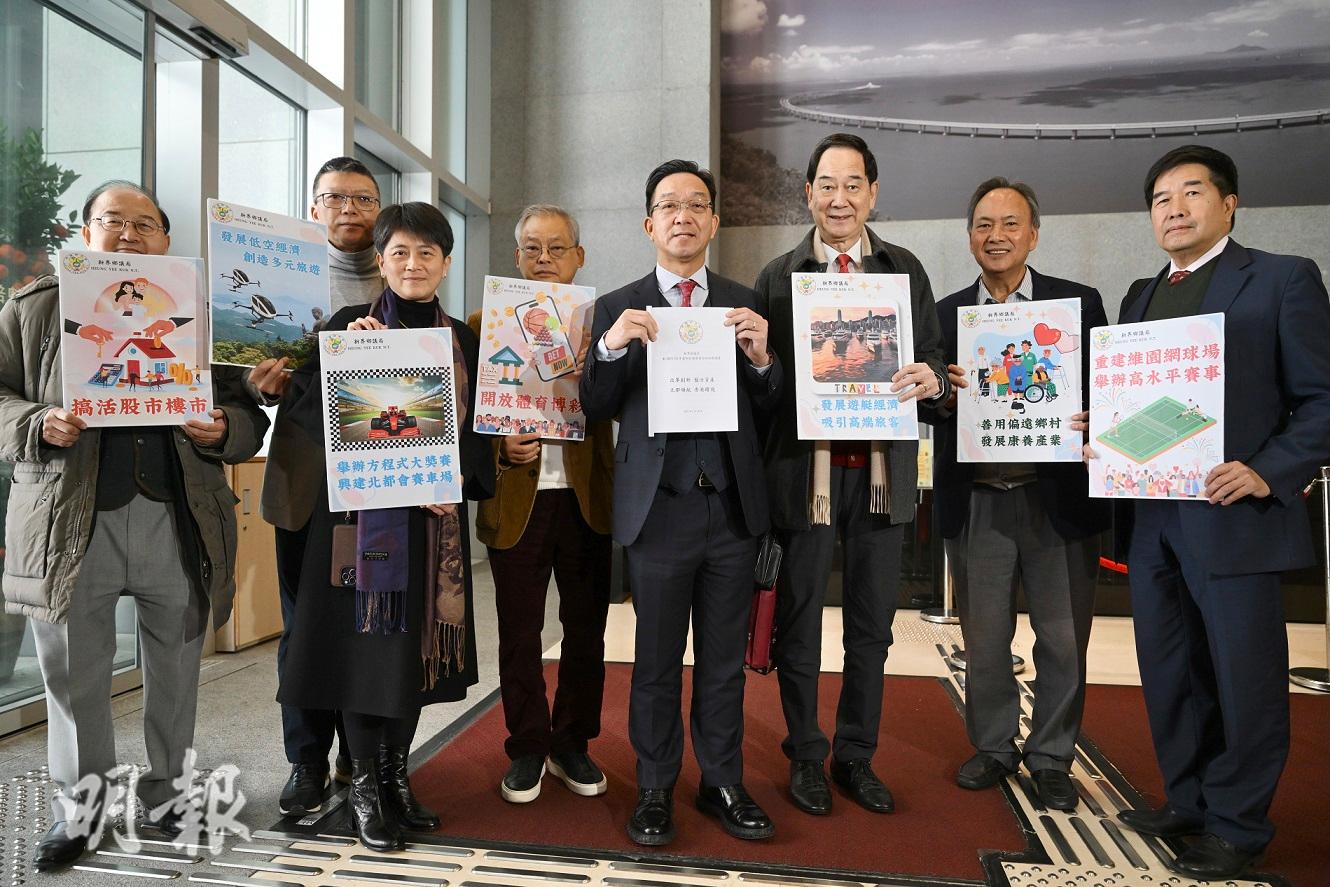 推動盛事經濟方面,鄉議局提出興建北都賽車場並申辦世界一級方程式賽車大獎賽,又期望當局重新分配及增加全港遊艇泊位,並提議在大嶼山及大澳等人口密度較低地區推低空旅遊觀光路線。其餘建議包括延長「預先批核還息不還本」計劃、完善鄉郊通訊網絡、加強對電影發展的支援等。