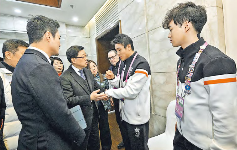 特首李家超昨在facebook發帖稱高度關注事件,已要求港協暨奧委會及文體旅局跟進。正在哈爾濱訪問的李家超昨早與文體旅局長羅淑佩及特首辦主任葉文娟前往運動員村探望3名受傷運動員,鼓勵他們保持最好心理狀况,以不受任何事情影響的專業態度作賽;並向冰球隊表達港人支持,鼓勵隊員繼續保持士氣,應對餘下賽事。