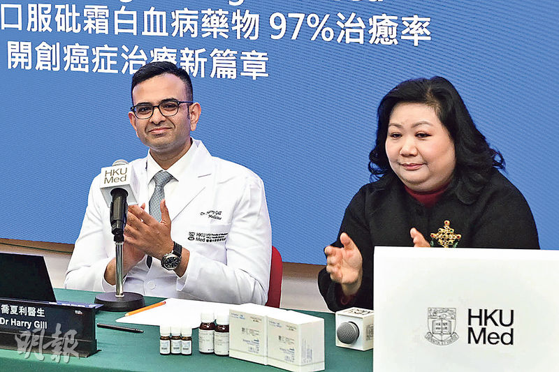 【明報專訊】「急性早幼粒細胞白血病(APL)」現時標準療法存在復發率較高、費用高昂等問題,港大醫學院團隊自主研發「藥用口服砒霜」,臨牀研究顯示服用該藥的APL患者整體存活率超過97%。該藥已在本港應用,近期獲美國食品及藥物管理局(FDA)及歐洲藥品管理局(EMA)認證,團隊將推廣這款處方藥至全球使用,目標2027、2028年在歐美註冊,令更多患者受惠。