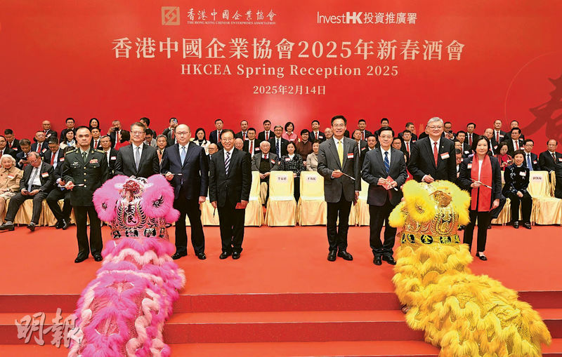 【明報專訊】中聯辦主任鄭雁雄及特首李家超昨日出席香港中國企業協會新春酒會,兩人致辭均鼓勵中資參與北部都會區發展,李家超形容為「這將是一項有好回報的投資」。鄭雁雄另提及希望中資在增強發展動能、維持和諧穩定、保障社會民生上,在港有更大擔當作為。