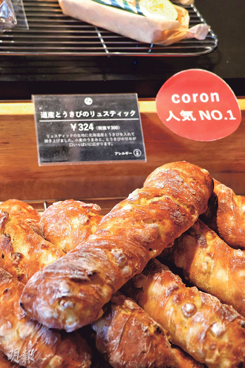 【明報專訊】要品嘗北海道麵粉的獨特風味,行內人大多推薦boulangerie coron。這家麵包店於2012年創立,由日本麵包大師志賀勝榮擔任大廚(Grand chef),他同時也是東京著名麵包店Signifiant Signifié的創辦人。麵包店標榜只使用北海道麵粉製作麵包,品種包括北方之香、北穗浪、春之戀等小麥製成的麵粉,並致力選用本地食材,彰顯出濃厚在地意識。志賀勝榮為了將小麥的美味發揮到極致,他將北海道麵粉、天然酵母等材料搓揉成麵糰後,會長時間低溫發酵,令麵包增加含水量,變得煙韌且濕潤,咀嚼愈久,愈能感受到麵包中的濃郁小麥香。