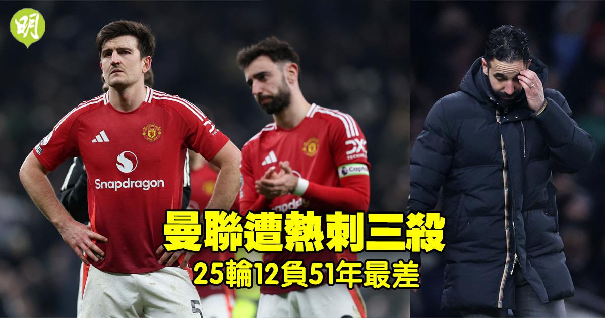 今季英超在下游打滾的「難兄難弟」熱刺和曼聯今晨(17日)交鋒,結果佔主場之利的熱刺主場以1:0勝出,連同英格蘭聯賽盃季內「三殺」對手。「紅魔」賽後25戰續得29分跌落第15位,而迄今輸12場乃隊史在英格蘭頂級聯賽51年來最差;主帥魯賓艾摩廉14次領軍錄得4勝2和8負,亦平了67年前的前帥劣績。